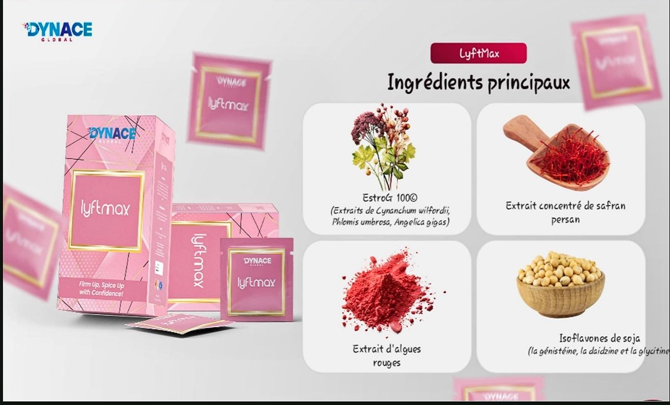 LyftMax est un complément alimentaire révolutionnaire conçu pour améliorer la santé et la confiance des femmes. Formulé à partir d'ingrédients naturels puissants, LyftMax favorise une poitrine plus ferme et plus tonique, remodèle et agrandit, stimule les hormones, améliore la peau, améliore la circulation sanguine et la libido, et favorise la santé vaginale.